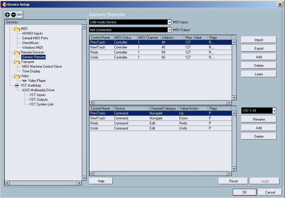 - on the bottom table change the Device to Command, choose in Channel Edit, and lastly in Value choose Undo.